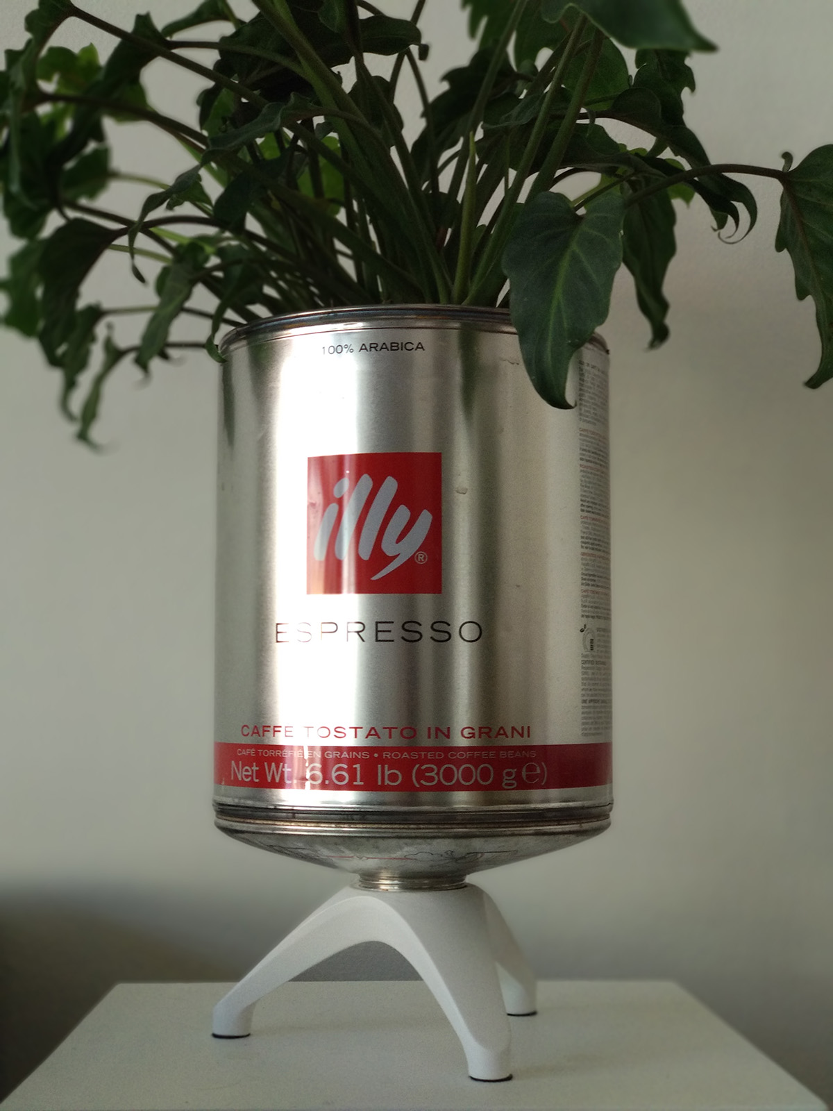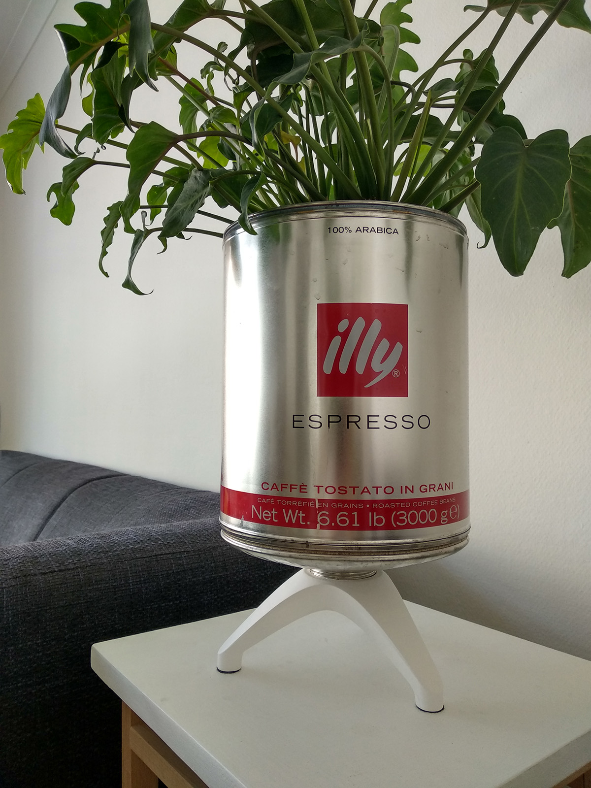 The Illy bean hoppers are a nice way for a coffee store to promote the type of bean they're using. However, it creates a lot of waste once the can is empty. I could take one at a cafe and it has served as a plant pot for me ever since.