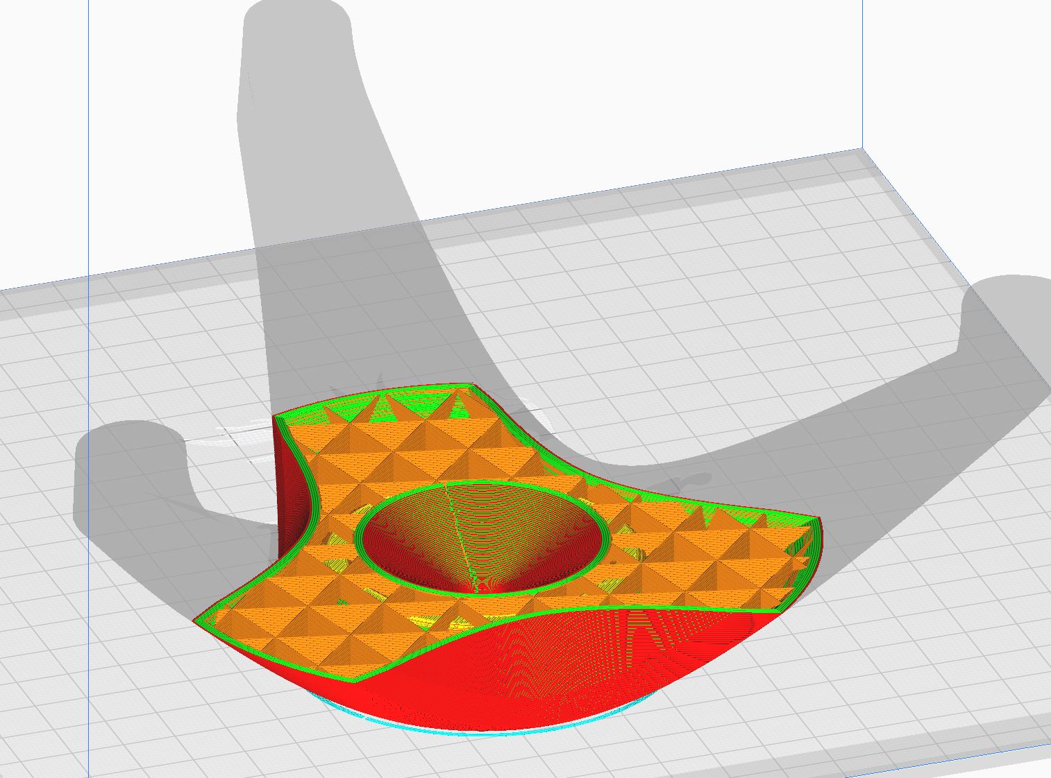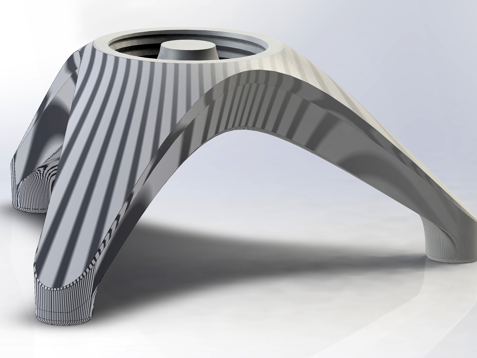 The smooth design is a result of its way of production method; Stability and printability (without supports) were key. The whole design is printed without support and is fully functional straight out of the printer.