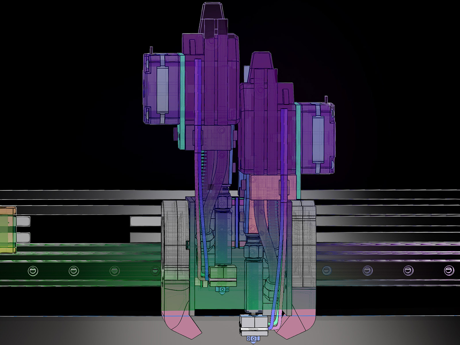 This is a project that I started in 2020 and is now on the shelve waiting for the plotter to finish first. This new printer should bring best of both worlds; Fast CoreXY movements in a heated chamber (designed up to 90 degree Celcius) with 2 water-cooled extruder heads. Toolhead lifting will be done by wire, leaving the dual-stage solenoids out of the heated chamber, like all other actuators.